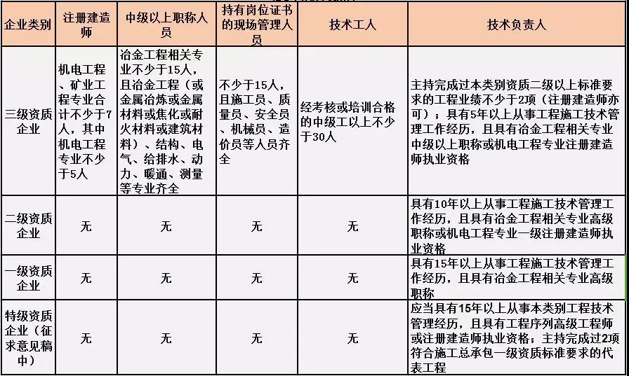 換句話說,并不是所有企業(yè)資質(zhì)都不要求有建造師等企業(yè)人員。施工總承包三級(jí)資質(zhì)企業(yè)對(duì)建造師等人員仍有要求,一級(jí)資質(zhì)、二級(jí)資質(zhì)企業(yè)保留技術(shù)負(fù)責(zé)人這一項(xiàng)要求,特級(jí)資質(zhì)另有規(guī)定。